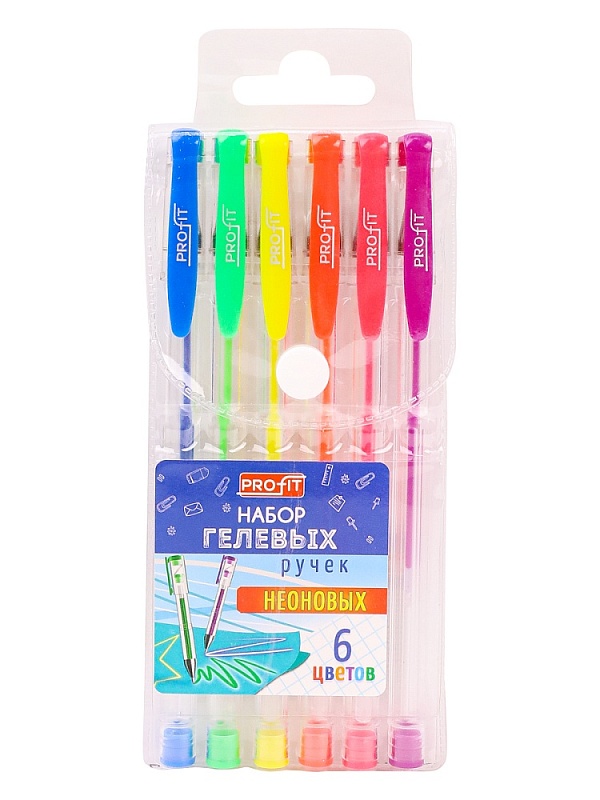 Набор гелевых ручек шести цветов. Ручки пишут легко и быстро, не требуют нажима. Быстро высыхающие чернила не размазываются и имеют насыщенный цвет. Упаковка: пластиковый блистер.