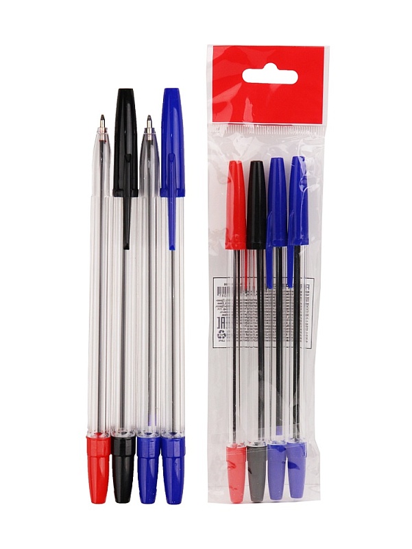 Набор ручек шариковых d=0,7 мм, 4шт с проз корп, в пластик.бл