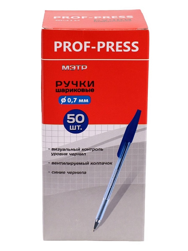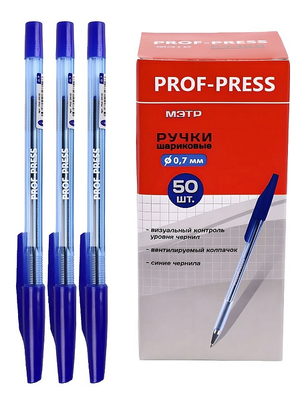 Ручка шариковая "МЭТР" СИНЯЯ, d=0,7 с проз корп, мет.наконеч