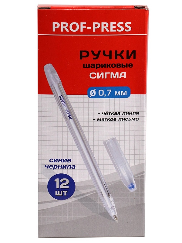 Ручка шариковая "СИГМА" СИНЯЯ d=0,7 прозрач.кор.,без гриппа
