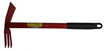 Комбинированная мотыжка линейки «Усадьба Люкс» имеет габариты 60х160х320 мм, металлические рабочую часть и ручку с порошковым окрашиванием, а также пластиковую ручку на конце инструмента для удобства работы. Один конец мотыжки — лопатка, другой — три прямых зубца. Данное изделие предназначено для прополки и рыхления почвы, удаления сорняков.