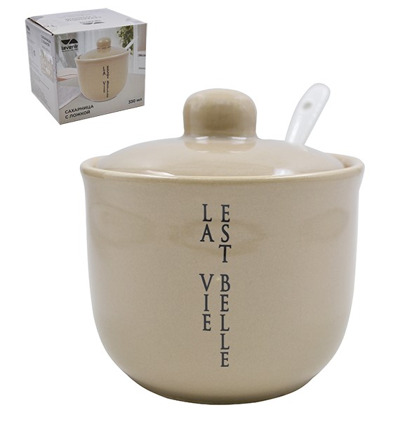 Сахарница Жизнь прекрасна 330 мл 10 см HC200-N118 с ложкой 113354 (36/1)