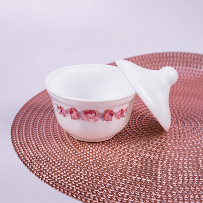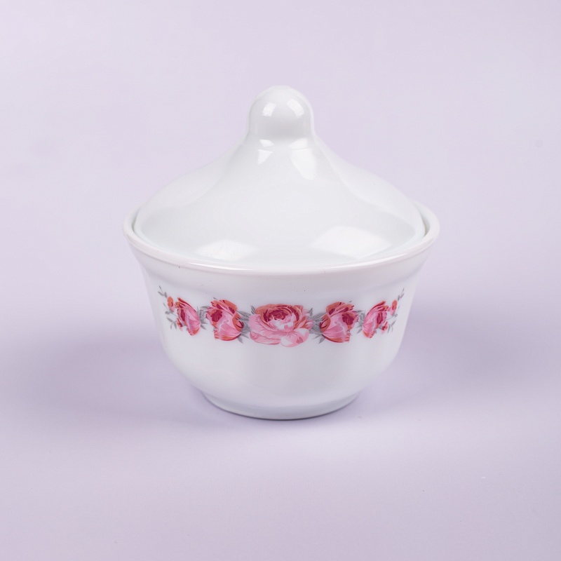 Сахарница 10,9см серии "RONIKA" с принтом из розовых роз, выполнена из опалового стекла-стеклокерамики высокого качества иранского производителя, отлично подойдет, как для ежедневного использования, так и для праздничного стола.