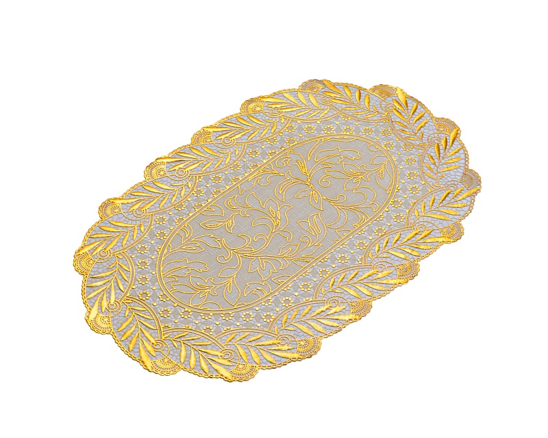 Салфетка для стола (30х46 см) кружевная с золотым напылением Лэйс Лайт из ПВХ без основы удобна в эксплуатации и является хорошим вариантом для практичной хозяйки, ведь она не только защищает стол, но также выполняет декоративную функцию.