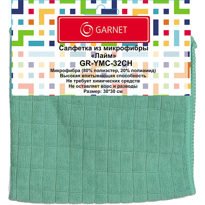 Салфетка из микрофибры вафельная Garnet "Лайм" 30х30 см GR-YMC-32CH(200/1)