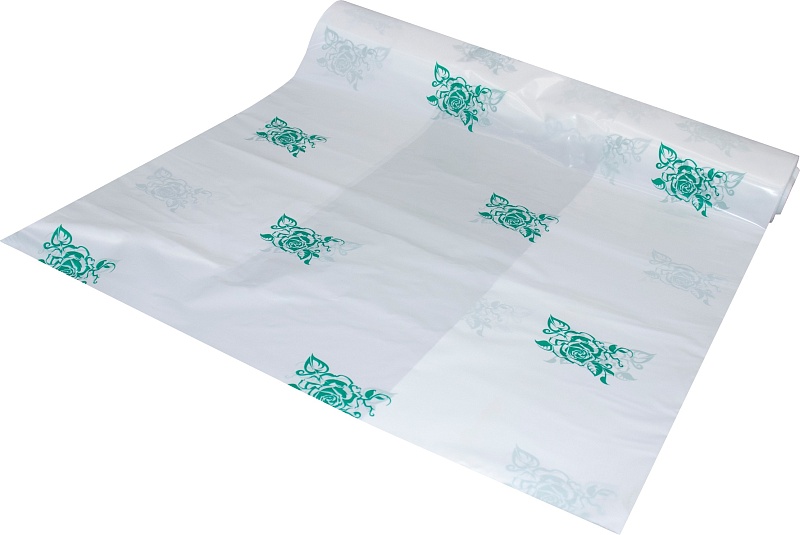 Скатерть ПВД БЕЛАЯ С ЗЕЛЕНЫМИ РОЗАМИ 110*180см 5шт в рулоне СКТ23111 (25/1)