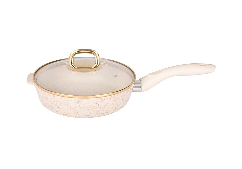 Сковорода глубокая 220мм с ручкойсо стекл крышкой АП линия Грация белый/золото сгбз221а (3/1)