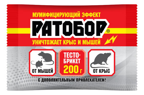 Приманка для грызунов РАТОБОР 200г тесто-брикет 018657 (30)