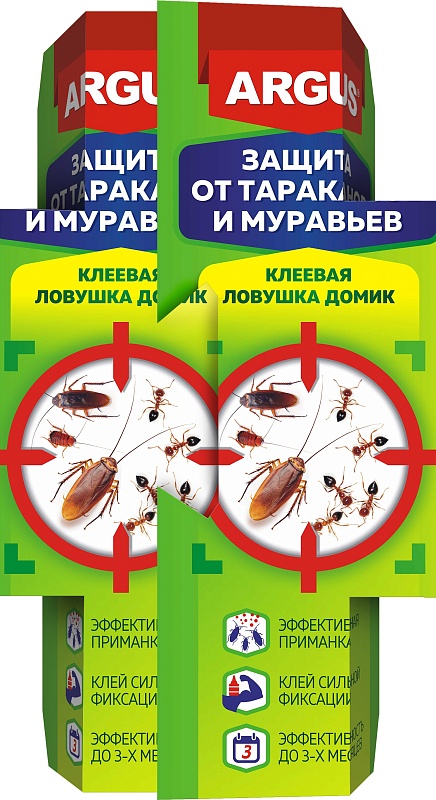 Высокоэффективное, НЕТОКСИЧНОЕ средство для уничтожения тараканов. Абсолютно безвредно для человека и домашних животных, не оказывает раздражающего воздействия на кожу. Клеевые ловушки Argus просты в применении и могут быть установлены в любом месте, в том числе в местах хранения пищевых продуктов. Вскрытые ловушки сохраняют активность в течении трех месяцев.