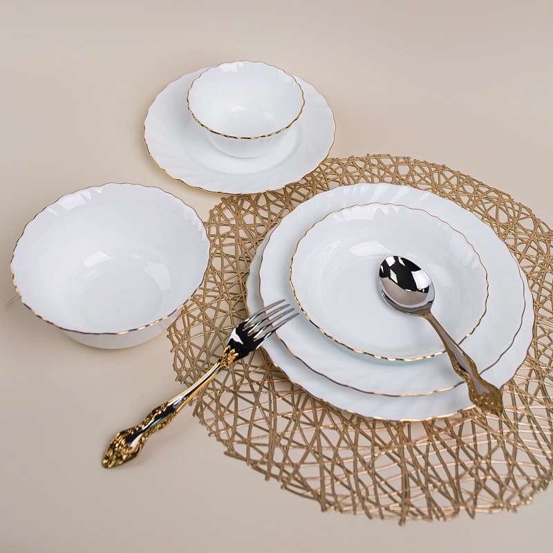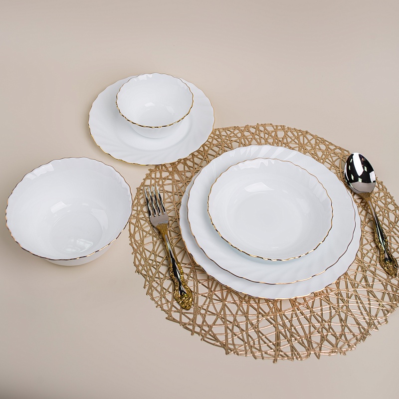 Набор обеденных тарелок отлично подойдет, как для ежедневного использования, так и для праздничного стола. Могут служить как блюдо для подачи. Простые формы и белоснежный цвет выгодно подчеркнут изысканность.