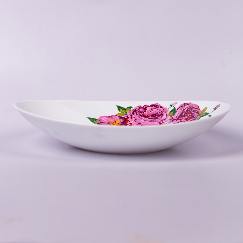 Тарелка овальная суповая 23*20,5 см с рисунком лавандовых пионов