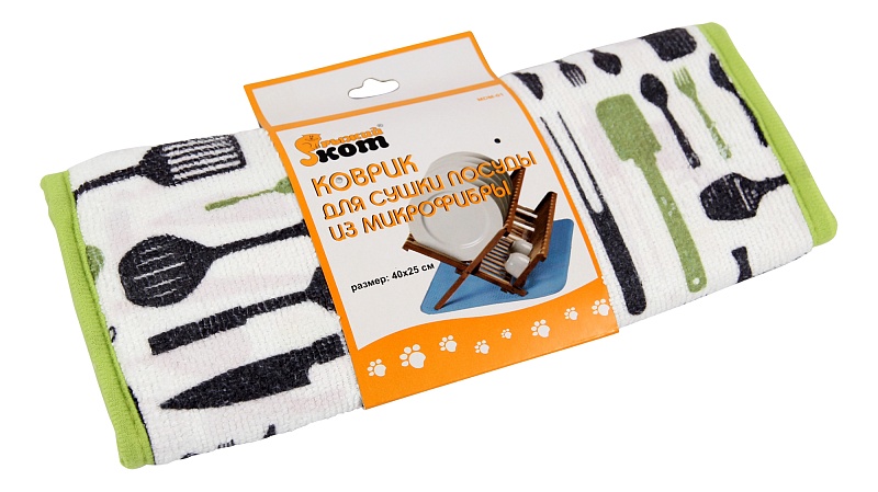 Можно использовать непосредственно на столешнице или столе, либо как вкладку в сушилку для посуды Коврик можно стирать в т.ч. в стиральной машине Современный дизайн Обработка краев: кант Размер: 40*25 см. Упаковка: бумажный ремень с подвесом"