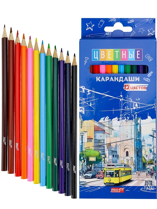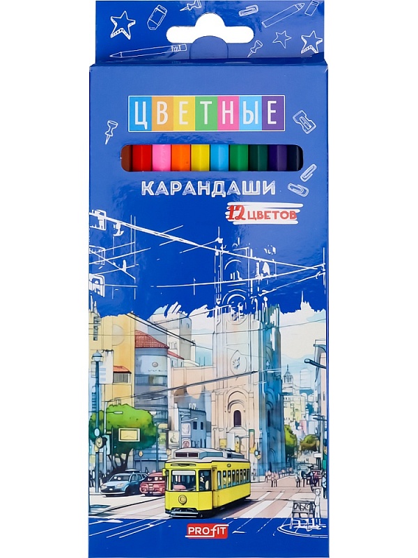 Карандаши цветн,набор,гексаг. 12цв. ГОРОДСКОЙ ТРАМВАЙ, d=2,65мм