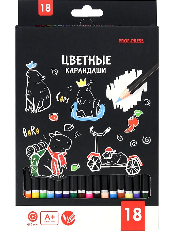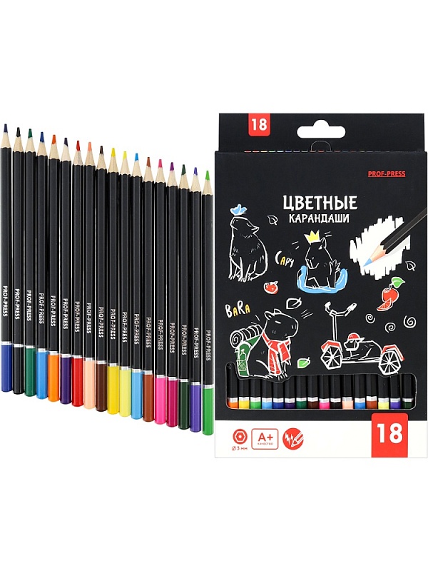 Цветные карандаши — это друзья детства каждого ребенка! Они не только помогают развитию мелкой моторики, но и способствуют выражению своих эмоций через рисунок! Яркие насыщенные цвета и качество — всё, что нужно для красивого рисунка и хорошего настроения! Цветные карандаши от компании "Проф-Пресс" представлены в наборе из 18 цветов и изготовлены в деревянном шестигранном корпусе. Твёрдость: 2М. Диаметр: 3 мм.