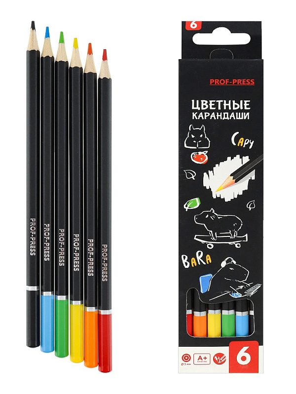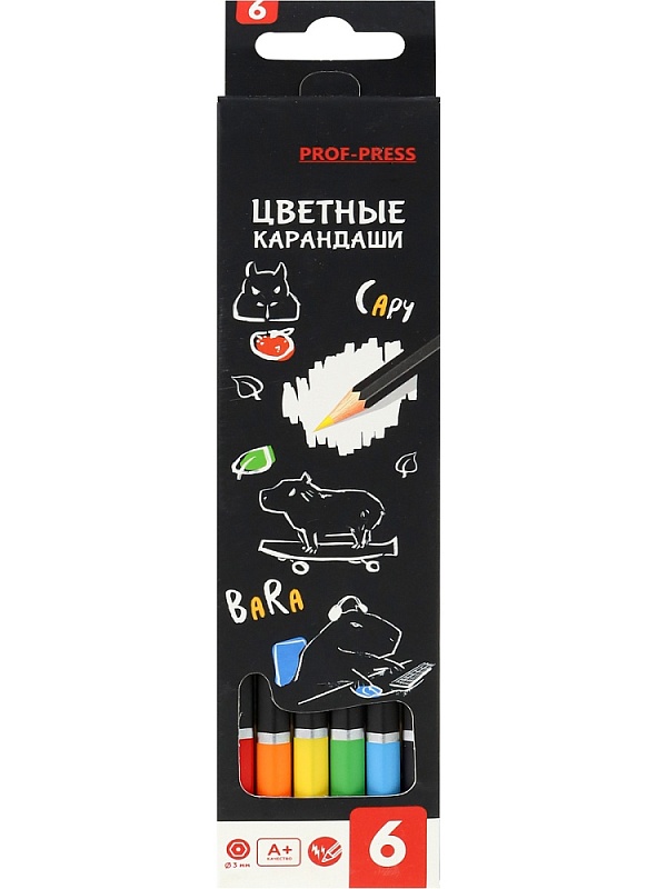 Цветные карандаши — это друзья детства каждого ребенка! Они не только помогают развитию мелкой моторики, но и способствуют выражению своих эмоций через рисунок! Яркие насыщенные цвета и качество — всё, что нужно для красивого рисунка и хорошего настроения! Цветные карандаши от компании "Проф-Пресс" представлены в наборе из 6 цветов и изготовлены в деревянном шестигранном корпусе. Твёрдость: 2М. Диаметр: 3 мм.