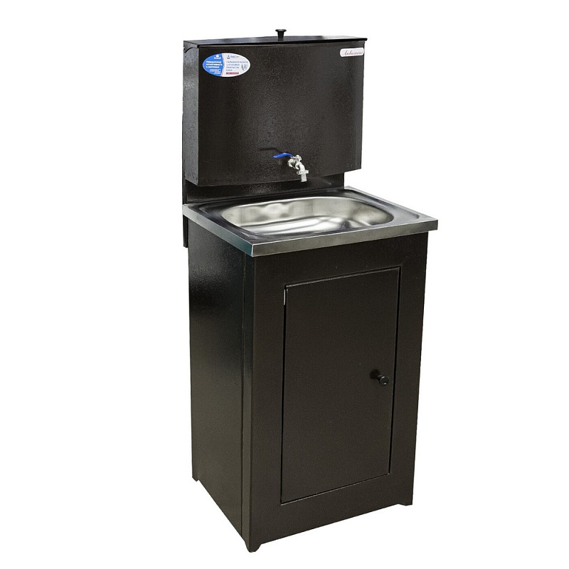Умывальники «Акватекс» с габаритами 420х500х1260 мм приобретаются для дачи, гаража, мастерской или других мест без центрального водоснабжения. Умывальник выполнен из высококачественной стали, окрашен прочной краской. Раковина с габаритами 400х500 мм изготовлена из нержавеющей стали. Конструкция умывальника сборная. Он состоит из тумбы, которая незаметно скрывает способ отлива воды и позволяет производить отвод воды даже в канализацию, и бака со специальным краном для экономии воды, который изнутри обработан гальваническим цинковым покрытием, обеспечивающее долговечность изделия и исключающее появление ржавчины. Объем бака — 20 л.