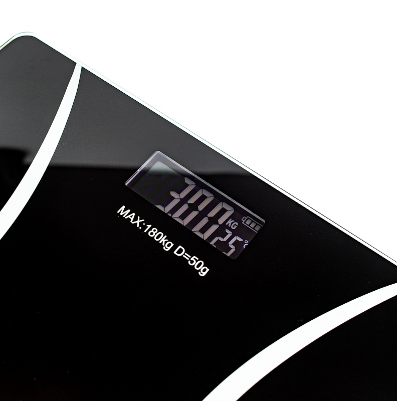 Электронные напольные весы с платформой из закаленного стекла толщиной 4мм выдерживают нагрузку до 180 кг. Точный сенсор с градацией по 50 гр имеет минимально возможную погрешность. Питание весов происходит от двух батарей типа ААА (в комплект не входят). Наличие прорезиненных ножек делает использование весов безопасным. LCD дисплей размером 5,9*2,4см позволяет легко увидеть результат измерения, а также покажет низкий уровень заряда батареи, перегрузки весов и температуру воздуха.