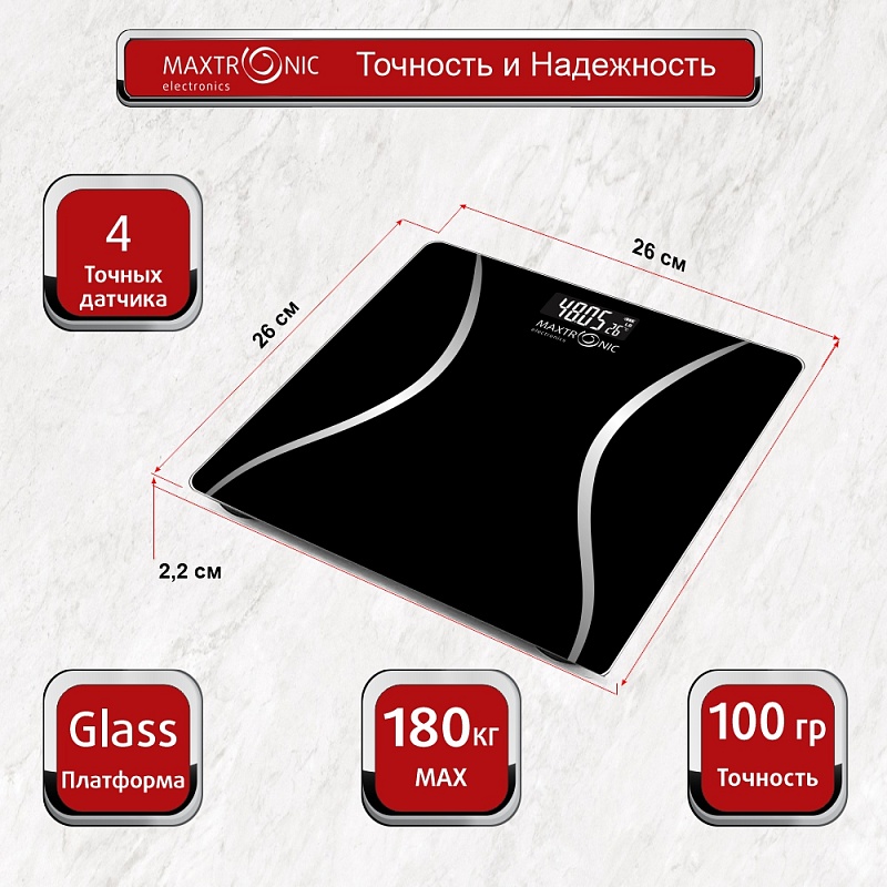 Весы напольные электронные 180кг MAXTRONIC MAX-BS-4126 (20)