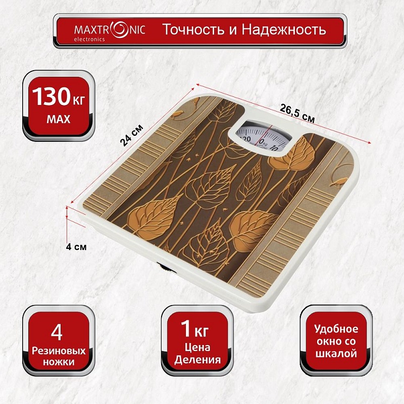 Весы напольные механические 130кг MAXTRONIC MAX-1648 10/20/1