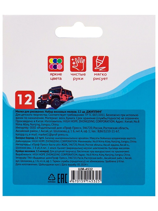 Набор восковых мелков для дет. творч. ДЖИППИНГ,12цв