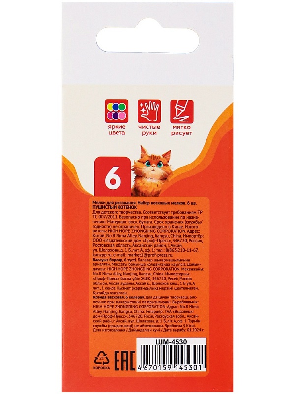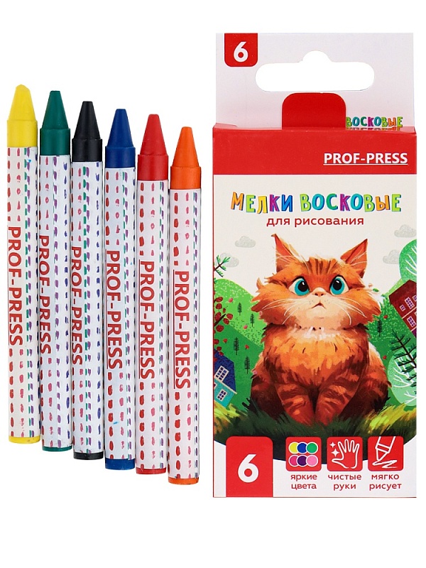 Набор восковых мелков для дет. твор. ПУШИСТЫЙ КОТЁНОК, 6 цв