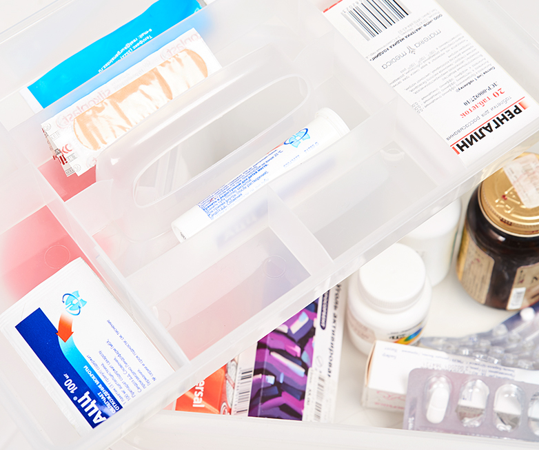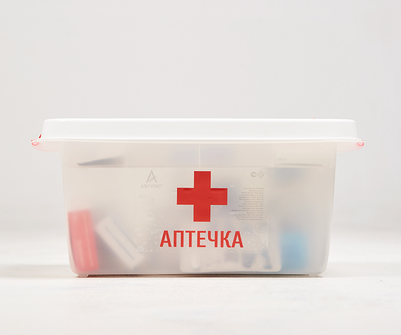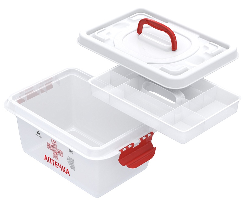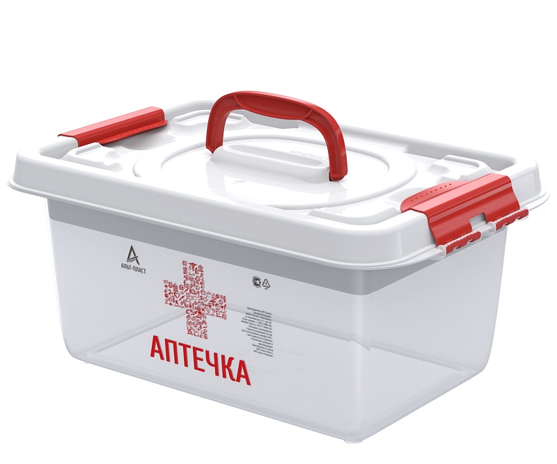 Универсальный бокс (аптечка) вместимостью 8 литров помогает навести порядок и рассортировать мелкие предметы. Изделие изготовлено из полипропилена и имеет габариты 359х242х166 мм. Бокс закрывается защёлками, его просто перенести с места на место. Разложить пластыри и часто используемые лекарства легко во вкладыше, они не потеряются и к ним у вас всегда будет быстрый доступ.
