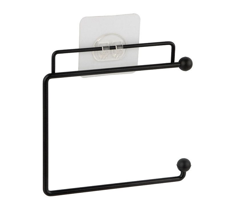 Держатель для туалетной бумаги Размер держателя: 15*12,2 см. Общий размер: 15*17*1,5 см. Цвет: черный. Крепление: 2 крючка на самоклеящейся основе. Материал: металл с порошковой окраской, пластмасса, ПВХ.
