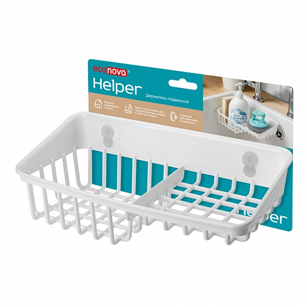 Широкий сетчатый держатель-полочка для губки, щётки, тряпки или моющего средства крепится к поверхности раковины или глянцевому фартуку с помощью присосов или саморезов. Держатель позволяет освободить плоскость возле раковины на кухне от моющего средства, губок и прочего и сэкономить место. Хранение губки и тряпки в держателе позволяет лишней жидкости стекать прямо в раковину и уберегает поверхность столешницы от избыточной влажности, а сетчатый корпус держателя обеспечивает быстрое просыхание губки или тряпки и предотвращает развитие на них грибка. Держатель продаётся в стильной упаковке, в комплекте идут два присоса. Легко моется, в том числе в посудомоечной машине (без присосов).