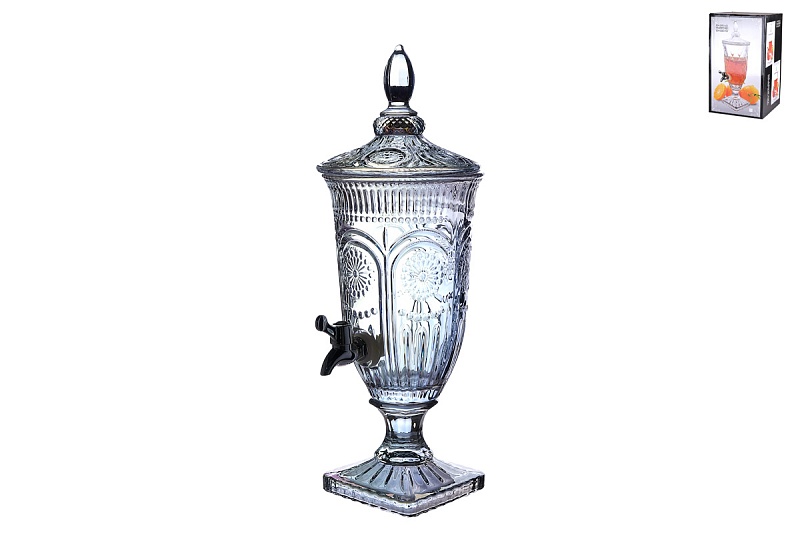 Утонченный диспенсер (из стекла с металлическим краном) позволит вам не только оригинально подать любимые напитки, но и придаст утонченности и разнообразия интерьеру вашей кухни или барной зоны. Дозатор для напитков станет отличным подарком для любителей роскоши и стиля, а также всем тем, кто любит домашний лимонад, фруктовый пунш, соки, чай, компот, слабоалкогольные коктейли, глинтвейн, грог и любые другие теплые или охлажденные напитки.