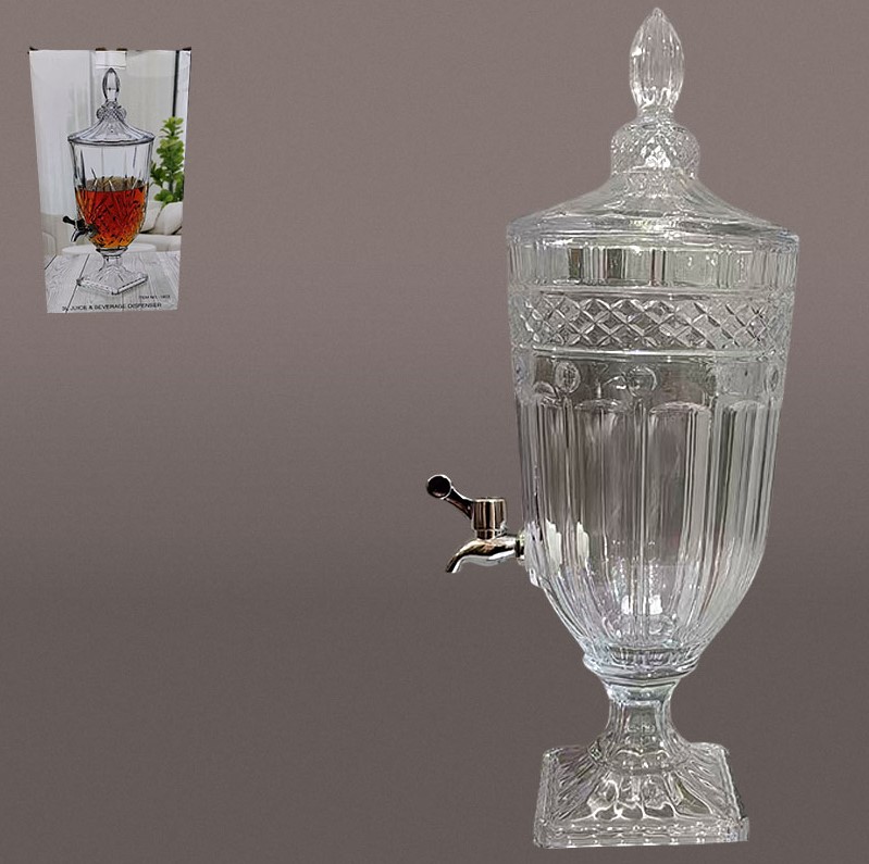 Утонченный диспенсер (из стекла с металлическим краном) позволит вам не только оригинально подать любимые напитки, но и придаст утонченности и разнообразия интерьеру вашей кухни или барной зоны. Дозатор для напитков станет отличным подарком для любителей роскоши и стиля, а также всем тем, кто любит домашний лимонад, фруктовый пунш, соки, чай, компот, слабоалкогольные коктейли, глинтвейн, грог и любые другие теплые или охлажденные напитки.