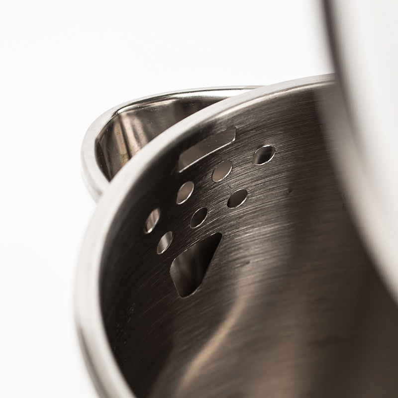 Корпус электрочайника выполнен из нержавеющей стали. Благодаря мощности 1500 Вт позволит быстро вскипятить до 1,8 л воды. Скрытый нагревательный элемент чайника и фильтр от накипи позволят легко поддерживать корпус изнутри чистым от загрязнений и накипи. Имеет встроенную систему отключения при достижении водой температуры 100 градусов, о чем оповестит световой индикатор, а так же защиту от включения без воды. Благодаря свободному вращению на подставке прибор удобно брать и ставить на место любой рукой. На корпусе чайника предусмотрен световой индикатор включения, который видно даже в темноте.