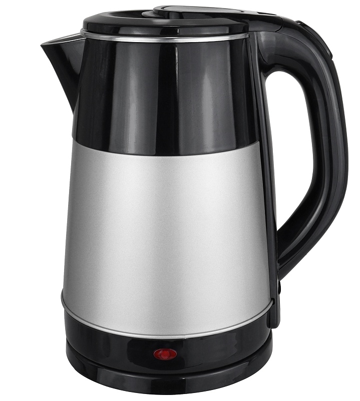 Корпус чайника имеет двойные стенки: пластик черного и серого цвета снаружи и нержавеющая сталь внутри. Благодаря мощности 1800 Вт позволит быстро вскипятить до 2,2 л воды. Скрытый нагревательный элемент чайника позволит при необходимости легко отмыть корпус изнутри от загрязнений и накипи. Имеет встроенную систему отключения при достижении водой температуры 100 градусов, о чем оповестит световой индикатор. Благодаря свободному вращению на подставке прибор удобно брать и ставить на место любой рукой.