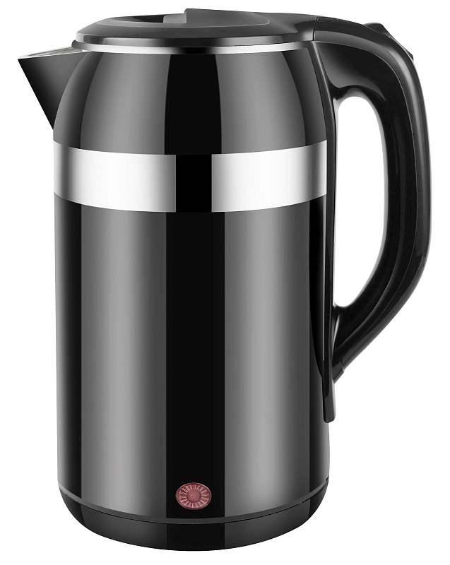 Корпус чайника имеет двойные стенки: пластик черного и серебристого цвета снаружи и нержавеющая сталь внутри. Благодаря мощности 1800 Вт позволит быстро вскипятить до 2,2 л воды. Скрытый нагревательный элемент чайника позволит при необходимости легко отмыть корпус изнутри от загрязнений и накипи. Имеет встроенную систему отключения при достижении водой температуры 100 градусов, о чем оповестит световой индикатор. Благодаря свободному вращению на подставке прибор удобно брать и ставить на место любой рукой.