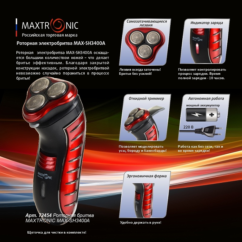 Бритва MAXTRONIC MAX-SH3400A 3 ножа, триммер (24) в Кирове