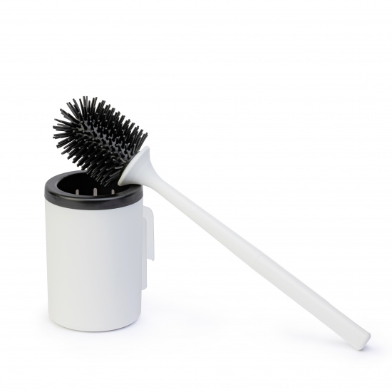 Комплект состоит из ершика с пластиковой рукояткой, щеткой из ТЭПа, стакана со вставкой и крепления на стену.? Материал, из которого изготовлена щетка, отличается долговечностью, не впитывает посторонние запахи и дольше держит первоначальную форму по сравнению с классическими ершиками из нейлоновой щетины. Ерш легко очищается и не задерживает влагу.