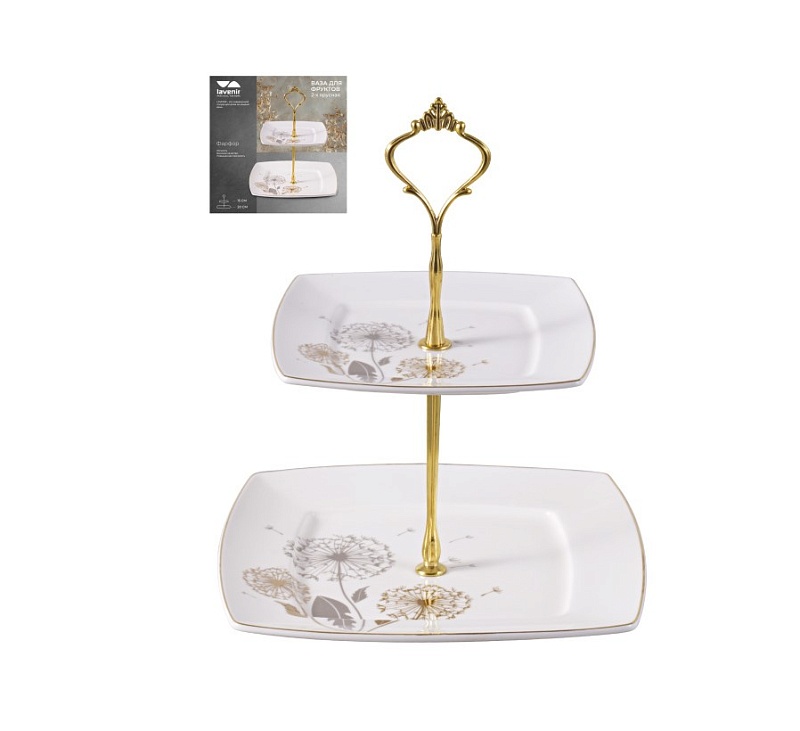 Ваза для фруктов 2-х ярусная Lavenir Одуванчики 222-681 квадрат 113493 (24/1)