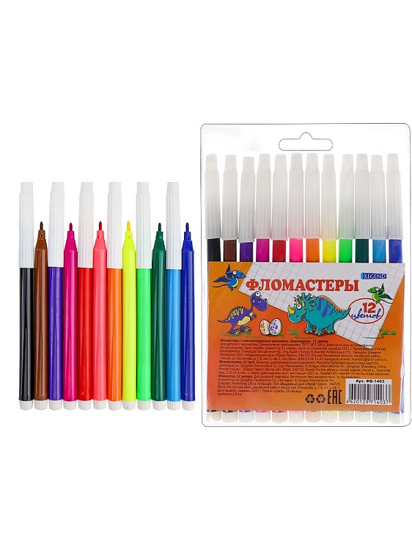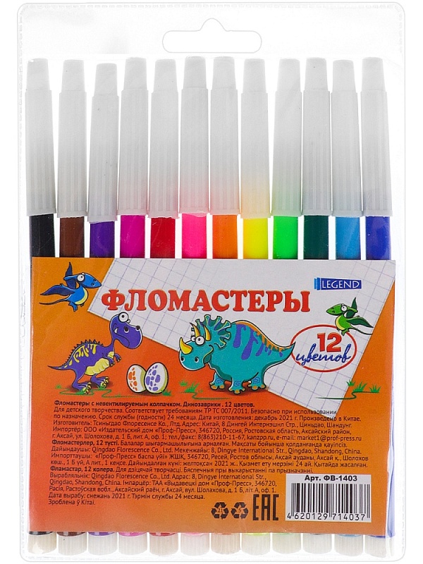 Фломастеры невентилируемые 12цв. ДИНОЗАВРИКИ В блистере в Кирове