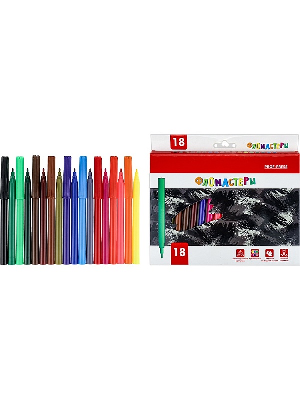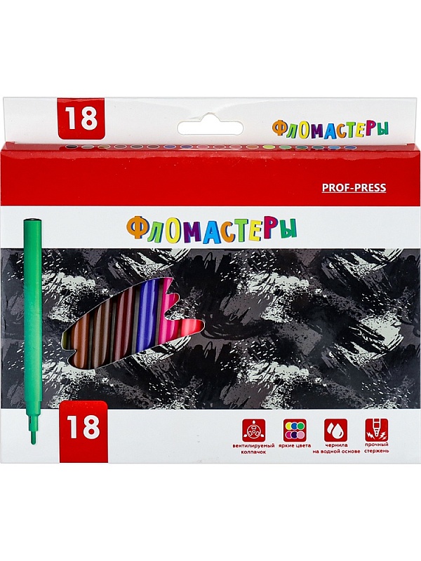 Фломастеры — это друзья детства каждого ребенка! Они не только помогают развитию мелкой моторики, но и способствуют выражению своих эмоций через рисунок! Яркие насыщенные цвета и качество — всё, что нужно для красивого рисунка и хорошего настроения! Фломастеры от компании "Проф-Пресс" представлены в наборе из 18 цветов с вентилируемым колпачком. Продаются в картонной коробке.