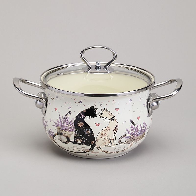 КАСТРЮЛЯ ЭМАЛИРОВАННАЯ СО СТЕКЛЯННОЙ КРЫШКОЙ LAVENDER CATS 2,0 Л 18СМ 943-076 (6/1) в Кирове