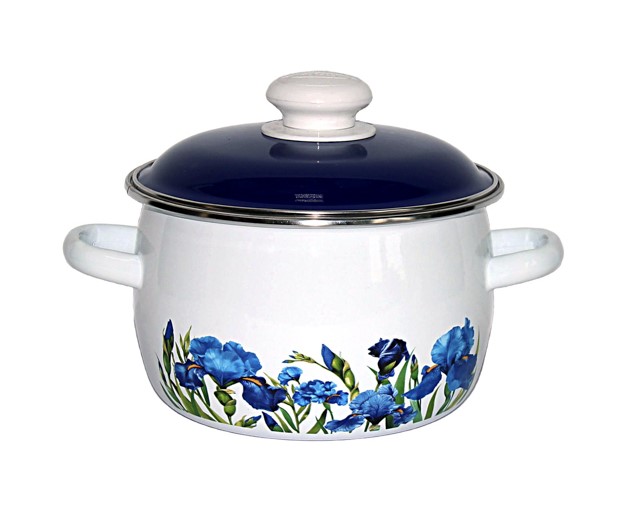 Кастрюля сферическая 2 л с ободком белая крышка кобальтовая Ирисы 6MC161P (8) в Кирове