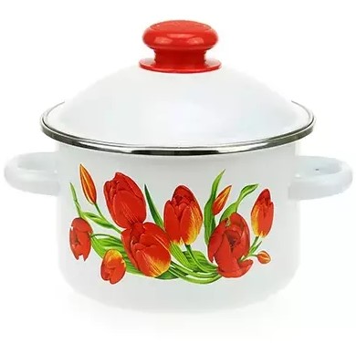 Кастрюля цил 2 л с ободком, белая, Тюльпаны 1MD161M (8) в Кирове