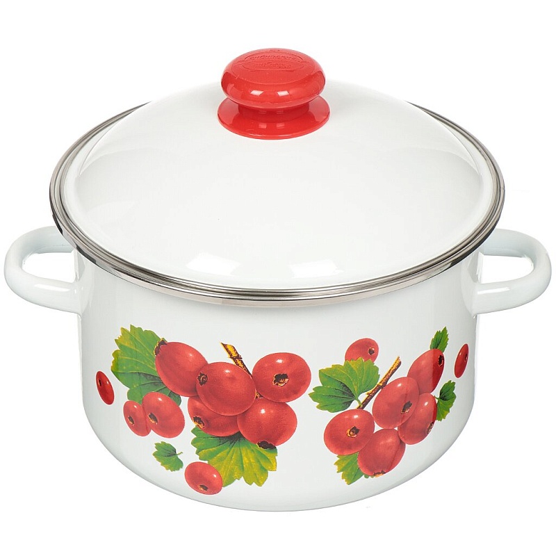 Кастрюля цил 4 л с ободком, белая, Калина красная 1MD201M (4)
