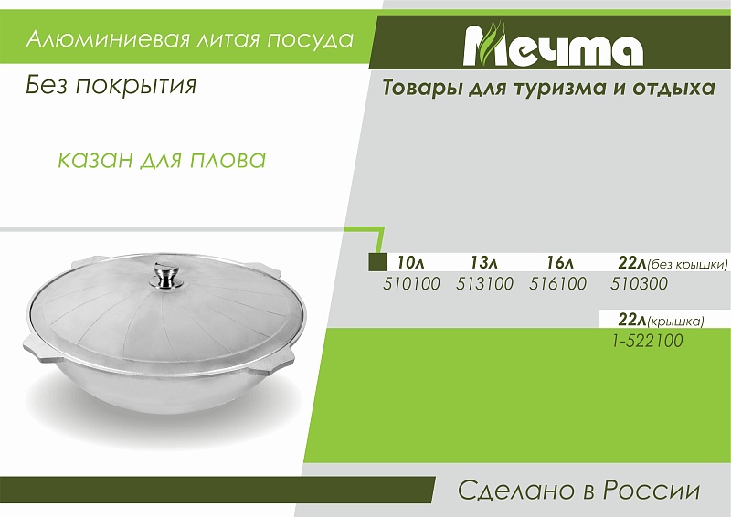 Казан для плова 10 литров литой алюминиевый 510200 (5/1) в Кирове