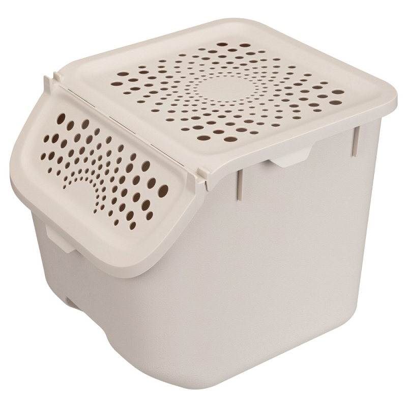 Линейка контейнеров для разных видов овощей представлена в двух объемах: 7,8 л и 11,3 л. Контейнеры можно ставить друг на друга в устойчивую стопку, оптимизируя полочное пространство на кухне, балконе или в кладовой. Крышка полностью снимается, что позволяет удобно наполнить контейнер. Многочисленные вентиляционные отверстия обеспечат естественную циркуляцию воздуха и отвод избытка влаги. Клапан крышки фиксируется в открытом положении не перекрывая доступ внутрь контейнера расположенного сверху. Производятся из безопасного пищевого полипропилена подлежащего вторичной переработке. Он экологичен и безопасен для человека, не впитывает запахи и легко моется.