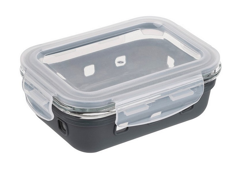 Контейнер MASSIMO, 600 мл, из жаропрочного стекла с крышкой с защёлками в силиконовой подставке