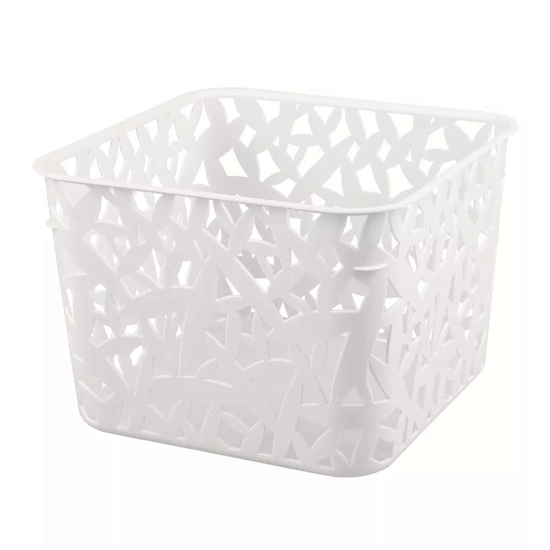 Легкая и удобная корзинка квадратной формы подходит для хранения бытовых принадлежностей, предметов гигиены, различных мелочей. Поможет правильно организовать пространство в доме и сэкономит место. Имеет компактные размеры: легко разместится на полке шкафа или стеллажа.