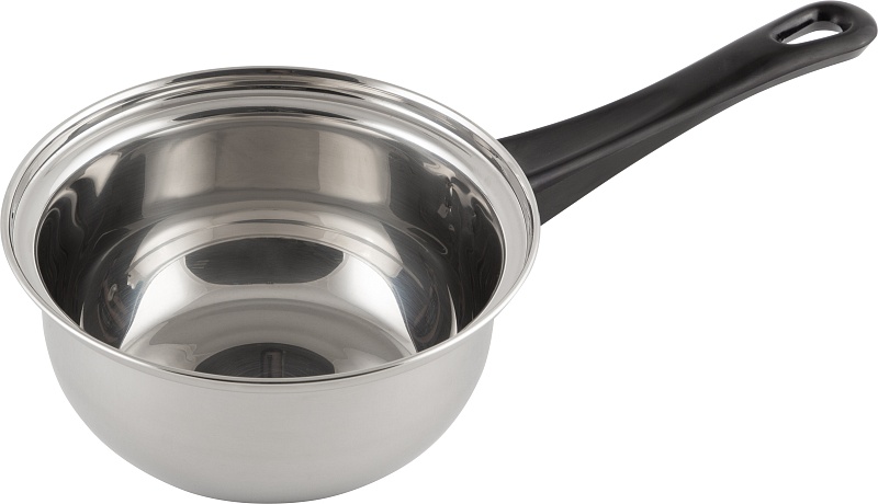 Нержавеющая сталь № 201, объем - 750 мл, толщина 0,35 мм, диа 14 см, высота 7 см, дно однослойное, зеркальная полировка снаружи и внутри, подходит для всех типов плит. инд упаковка - стикер и пакет.
