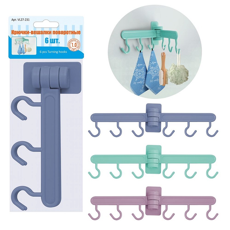 Крючки-вешалки поворотные 6шт VL27-231 (12/1)
