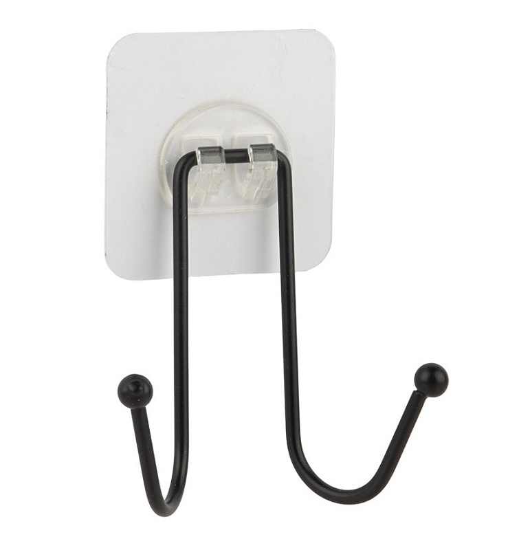 Крючок двойной Размер крючка: 8*4*8,5 см. Общий размер: 8*4*11,5 см. Цвет: черный. Крепление: крючок на самоклеящейся основе. Материал: металл с порошковой окраской, ПВХ.