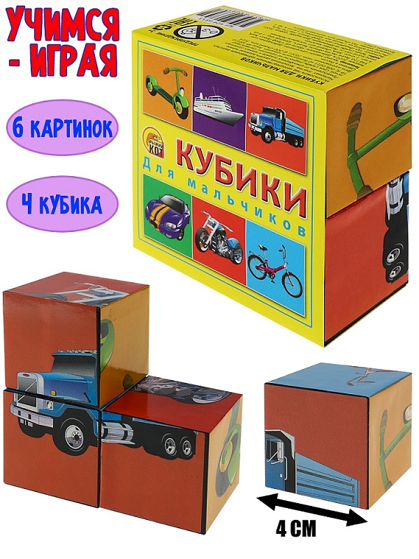 Кубики помогут вашему малышу выучить буквы, цифры, научиться считать и писать. С помощью кубиков ребёнок сам сможет составлять простые слова и несложные примеры, а также складывать несложные яркие картинки. Предназначено для детей в возрасте от 1,5 лет.